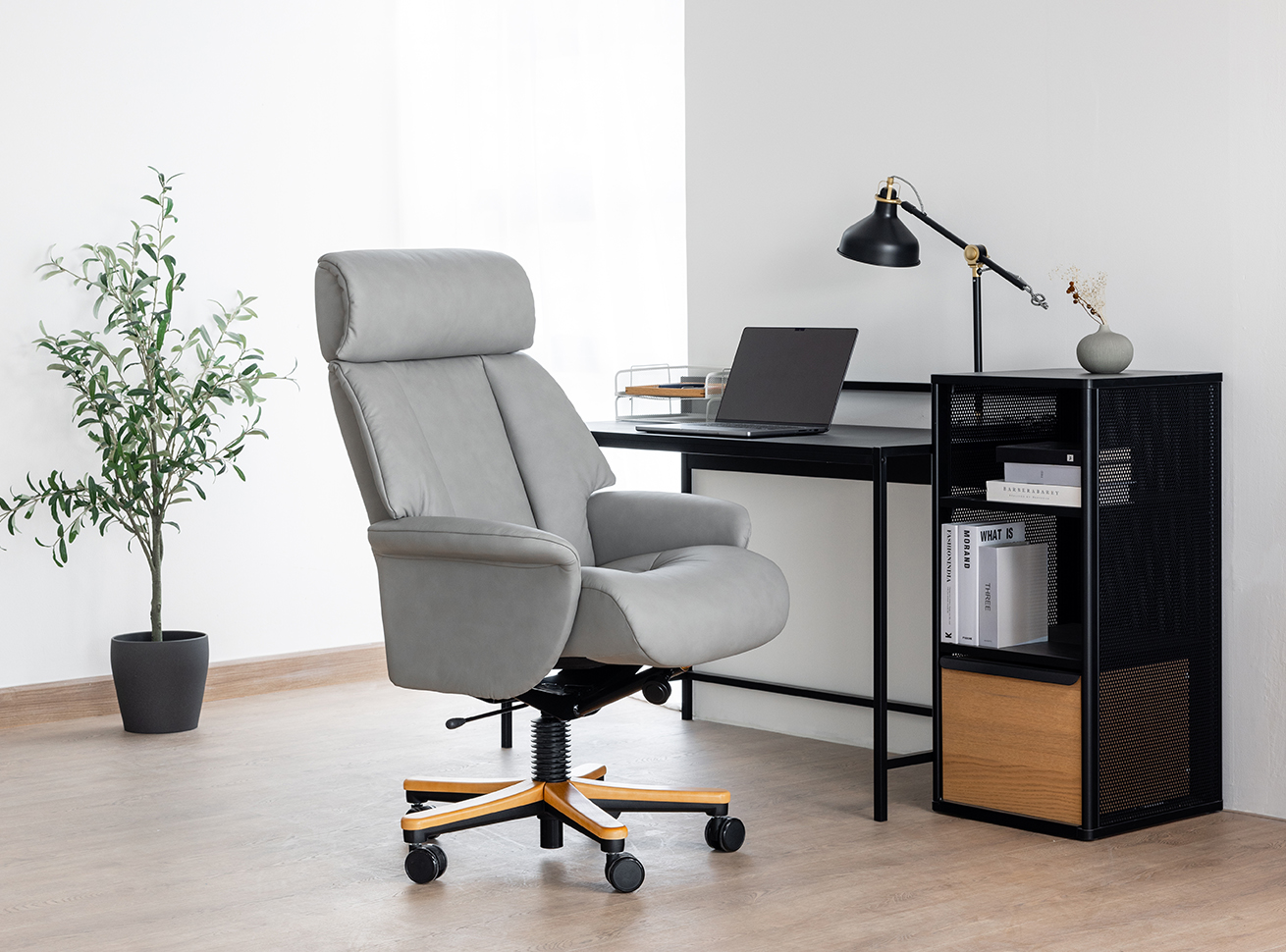 Nordic Office 99는 편안함과 지지력을 제공하는 작업용 의자로, 스칸디나비아 디자인과 기능성을 결합한 제품입니다. 인체공학적으로 설계된 고급 폼, 조정 가능한 헤드레스트, 견고한 라미네이트 목재 및 강철 프레임을 사용해 작업 중 편안한 자세를 지원합니다. 360° 회전 및 Comfort-glide 시스템을 통해 자연스러운 움직임을 지원하며, 스타 휠 베이스로 원활한 이동이 가능합니다. 모든 제품은 노르웨이 품질 기준을 충족합니다.