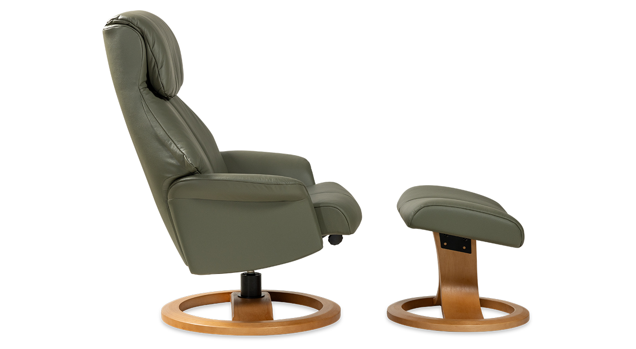 Scandi 150 리클라이너는 현대적인 노르웨이 디자인과 탁월한 편안함을 제공합니다. 작고 가벼운 실루엣으로 작은 공간에도 적합하며, 헤드레스트 조정, Comfort Glide™ 시스템을 통한 부드러운 리클라이닝, 360° 스위블 기능 등이 특징입니다. 발 받침대는 인체공학적으로 설계되어 혈액 순환을 돕고, 다양한 가죽 컬러와 목재 마감 처리로 맞춤형 스타일을 연출할 수 있습니다.