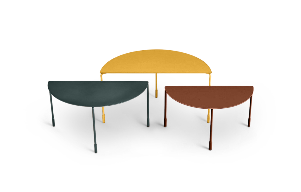 Hoodi는 세 가지 다른 크기의 커피테이블, 그리고 다양한 크기의 콘솔 테이블을 포함합니다. 각 제품은 다양한 컬러의 금속으로 제작되어 스타일과 기능을 동시에 만족시킵니다. 또한 커피테이블은 서로 높낮이가 다른게 제작되어 다양한 공간 연출을 할 수 있도록 합니다
