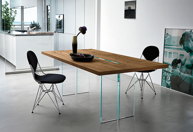 LLT는 투명하고 강도 높은 유리를 하부에 적용하여 공간감을 극대화 한 제품입니다. 40mm의 우드 상판과 대비되는 하부의 디자인이 어디서도 볼 수 없는 Fiam만의 고급스럽고 장인의 손길이 묻은 작품으로 완성됩니다. 견고하고도 세련된 디자인은 현대적이고 우아한 느낌을 더해 혁신적인 디자인과 뛰어난 조화를 이루어 모던한 공간에 잘 어울립니다.