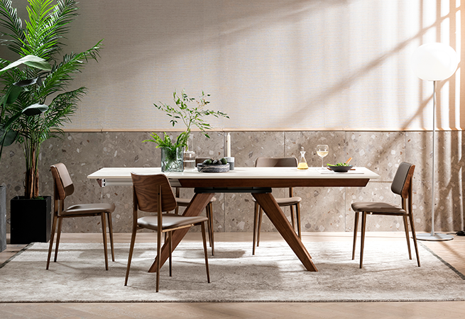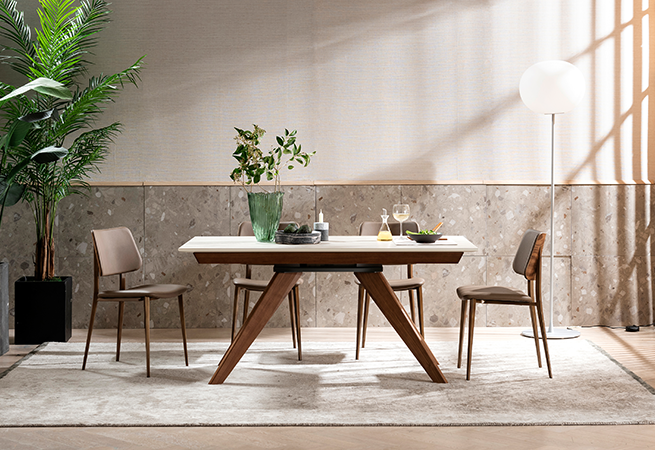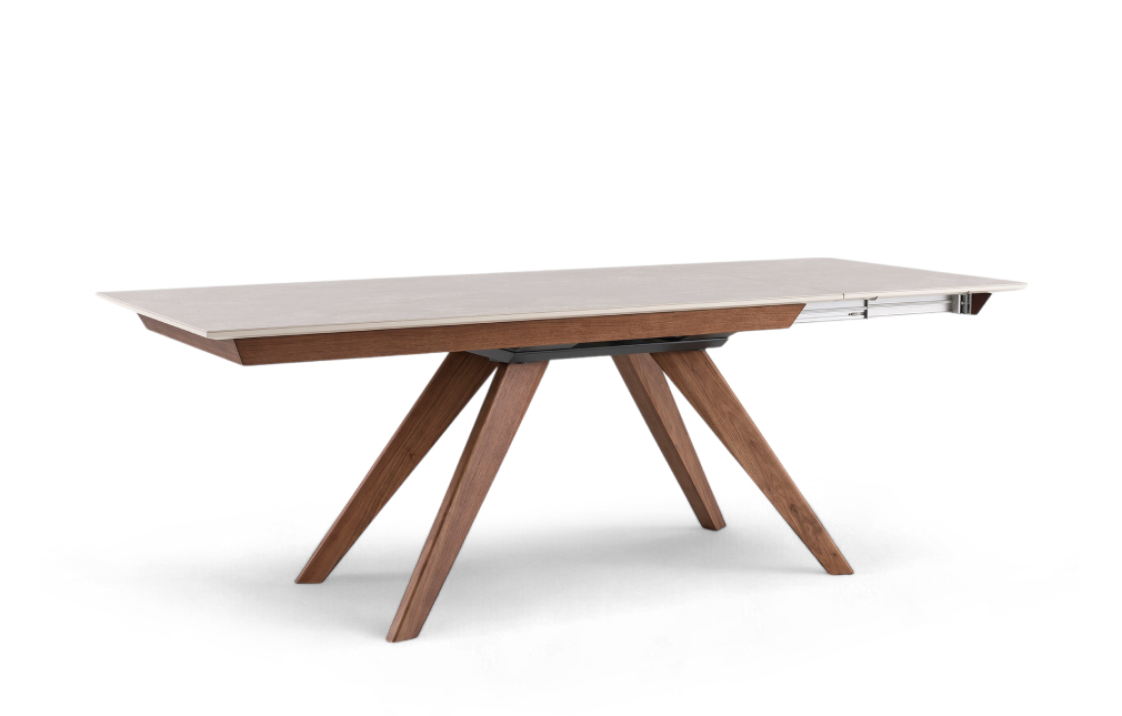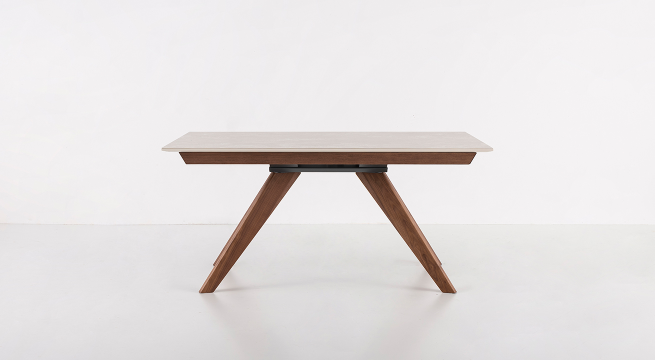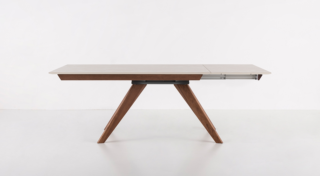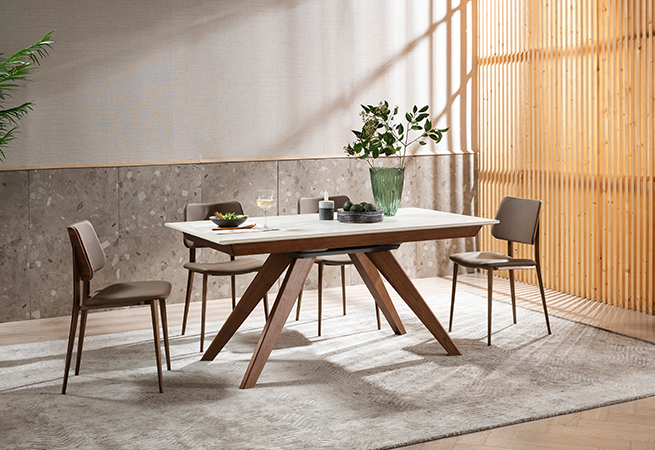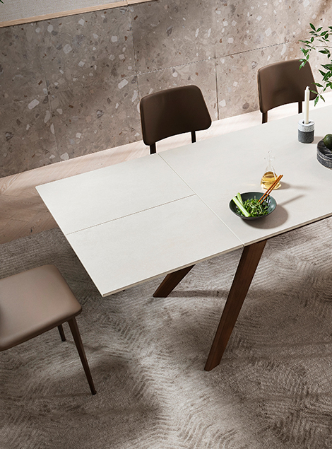 애나벨은 포셀린 상판과 월넛 하부 프레임의 조화로 고급스러운 인테리어에 이상적인 선택입니다. 포셀린은 일반 세라믹 상판에 비해 더욱 단단하고 수분 흡수율이 낮아 얼룩에 강한 내성을 자랑하여 사용자의 편의성을 보다 높여줍니다. 또한, 작동이 용이한 확장 시스템으로 실용성을 더하며, 독일 TUV NORD(TUV Nord)로부터 ISO 9001:2015 국제품질경영시스템 인증을 받아 품질을 보증합니다.