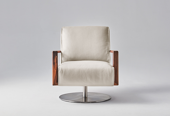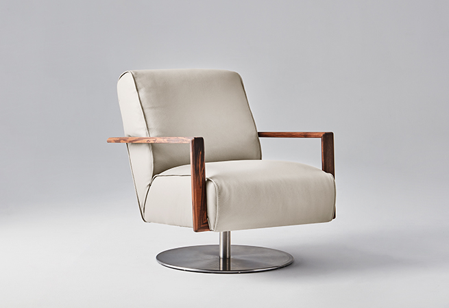 눈에 띄지만 방해가 되지 않는 안락의자; 모든 방의 하이라이트가 되면서도 그것을 독점하지 않는 디자인입니다. 강하고 견고한 나무 팔걸이와 매우 편안한 장식이 흥미로운 대비를 만듭니다.